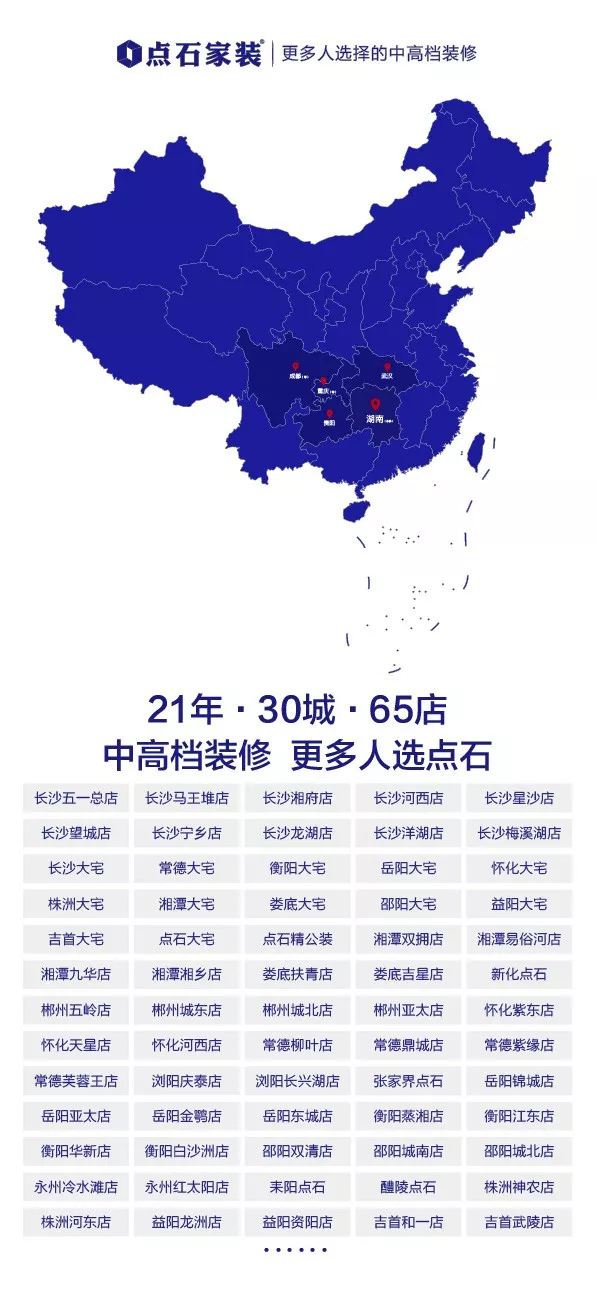 作为湖南家装领导者,点石21年精研中国人居,从空间设计到生活美学,始终不断探索空间在居住中的重要意义,我们始终坚持在做的,是用更好设计为每一个家庭量身定制最适合的生活方式、用心为中国打造千万幸福家。
